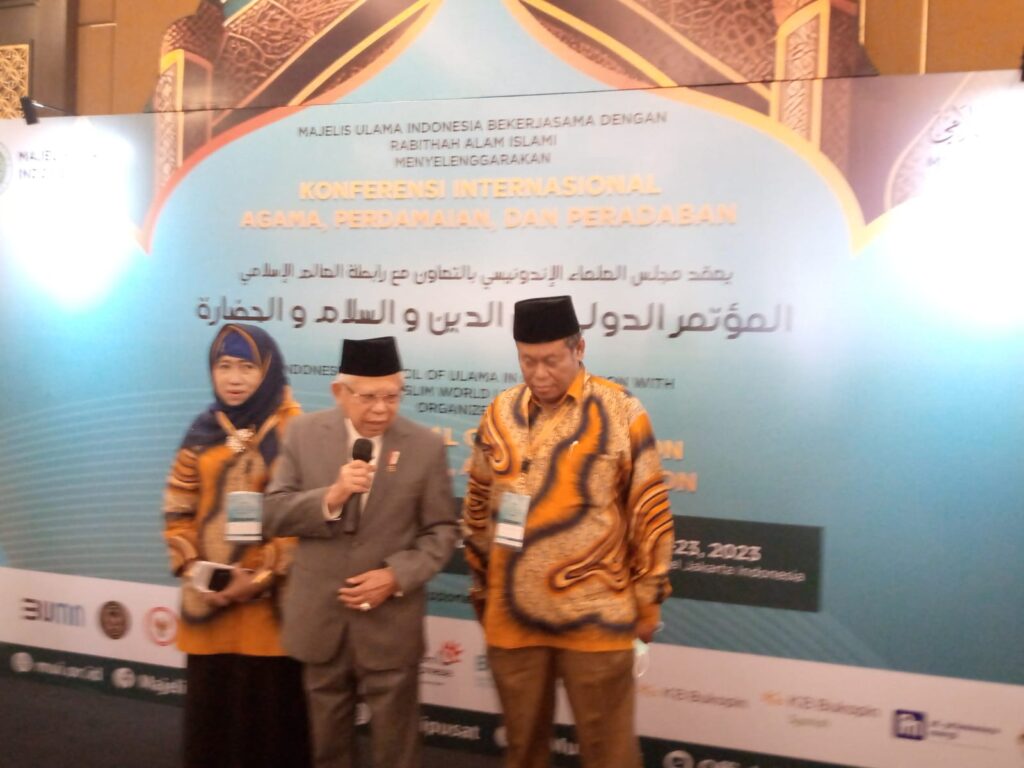 Berbicara dalam Konferensi Internasional “Agama, Perdamaian, dan Peradaban” yang digelar Majelis Ulama Indonesia dalam kerja sama dengan Rabithah Alam Islami, di Hotel Sultan, Jakarta, Senin (22/5/2023), Wakil Presiden Ma’ruf Amin mengajak para tokoh agama itu untuk menjadi pelopor yang mengarus-utamakan Islam moderat sehingga Islam dapat berkontribusi lebih besar pada perdamaian dunia.