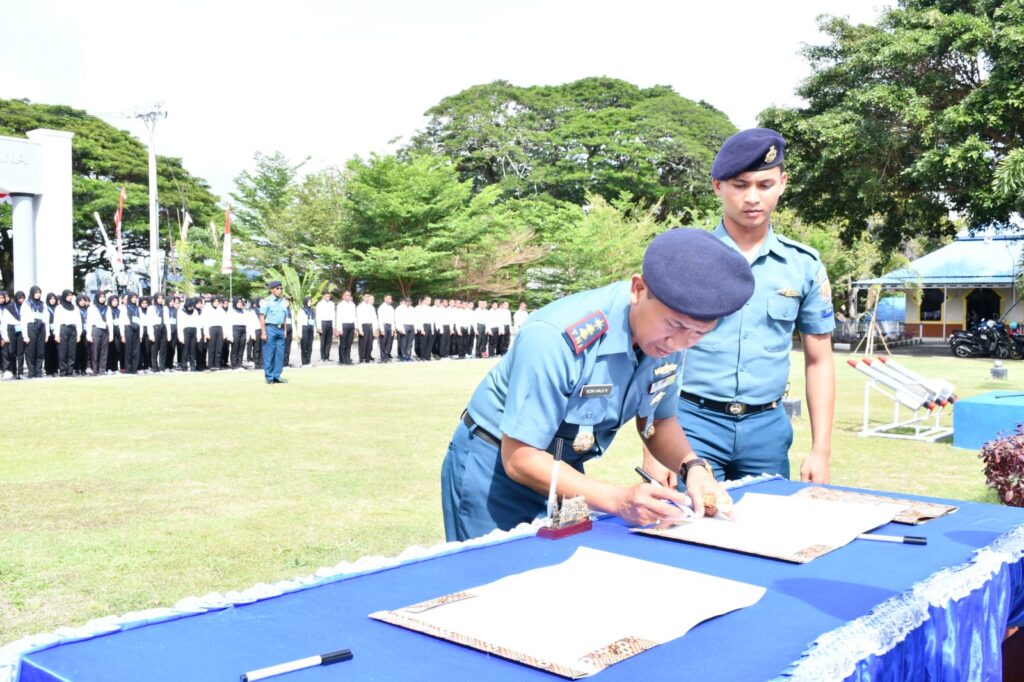 – Menjelang dimulainya pelaksanaan seleksi penerimaan Prajurit TNI Angkatan Laut, Panitia Daerah (Panda) Lanal Sabang menggelar Penandatanganan Pakta Integritas di depan para Calon Siswa Bintara dan Tamtama Prajurit Karier Gelombang II Tahun Anggran 2023, bertempat di Lapangan Mako Lanal Sabang, Jalan Yos Sudarso, Gampong Kuta Ateuh, Kecamatan Sukakarya, Kota Sabang, Rabu (9/8/2023).