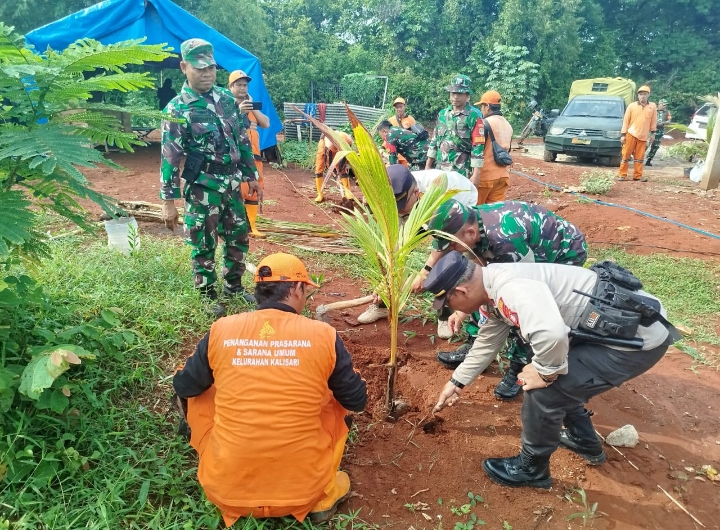 MCN.com – Kodim 0505/Jakarta Timur – Danramil 03/Pasar Rebo Mayor Inf Nawawi Affandi bersama tiga pilar perangkat kelurahan melaksanakan karya bakti penanaman pohon di lahan kosong lingkungan warga jalan R.A. Fadhilah RT.02/04 Kelurahan Kalisari Kecamatan Pasar Rebo, Rabu (06/11/24).