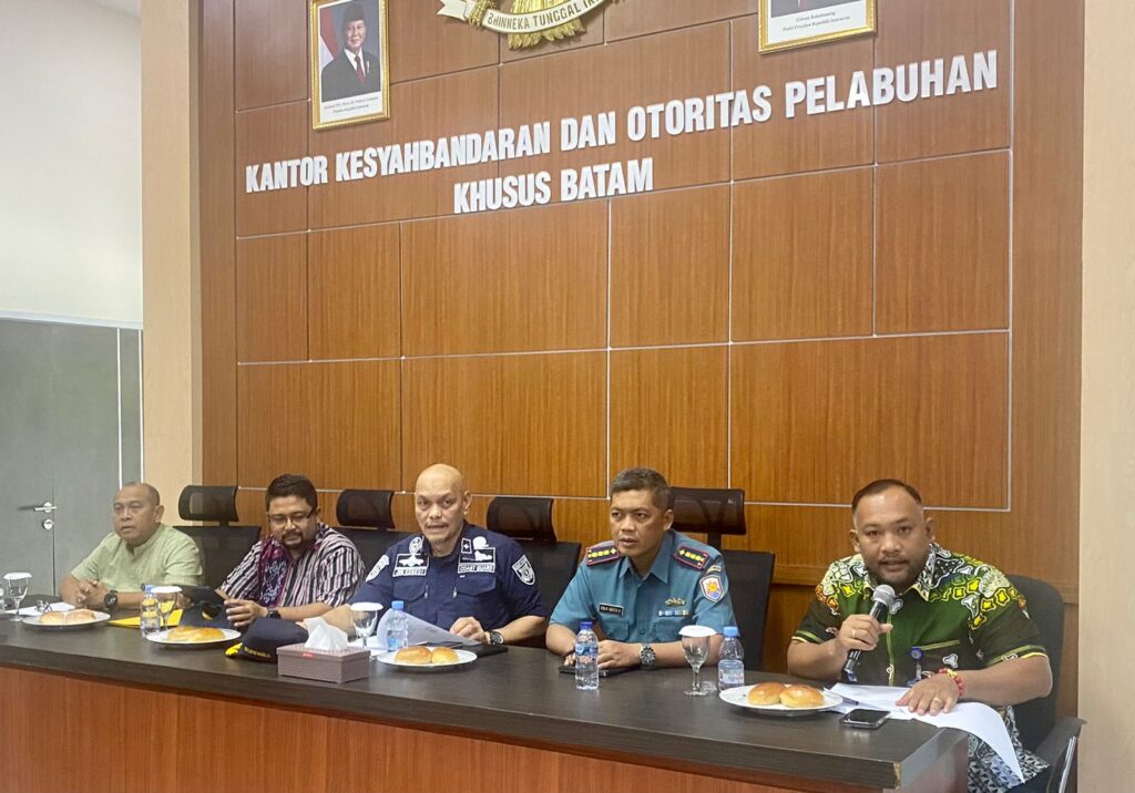 Tanjung Pinang,- MCN.com – Bertempat di Kantor Kesyahbandaran dan Otoritas Pelabuhan Khusus Batam, Danlanal Bintan Kolonel Laut (P) Dr. Eko Agus Susanto, S.E., M.M., menghadiri rapat terkait situasi cuaca buruk yang bisa menimbulkan kecelakaan laut di Perairan Batam dan Bintan, Sabtu (18/01/2025).