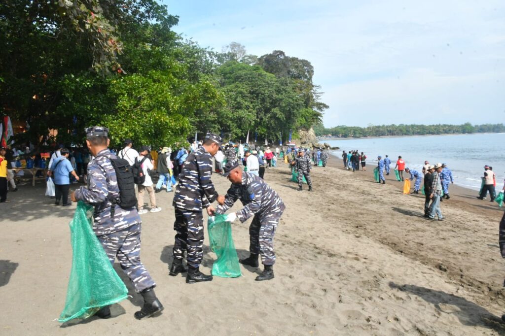 “Aksi bersih pantai yang diselenggarakan merupakan kolaborasi TNI dengan Kementerian Lingkungan Hidup (KLH) dan seluruh jajaran pemerintah daerah dan seluruh unsur terkait pada hari ini merupakan upaya yang dilakukan pemerintah untuk menangani sampah laut dengan solusi kolaboratif,” ujar Menteri LH Hanif.