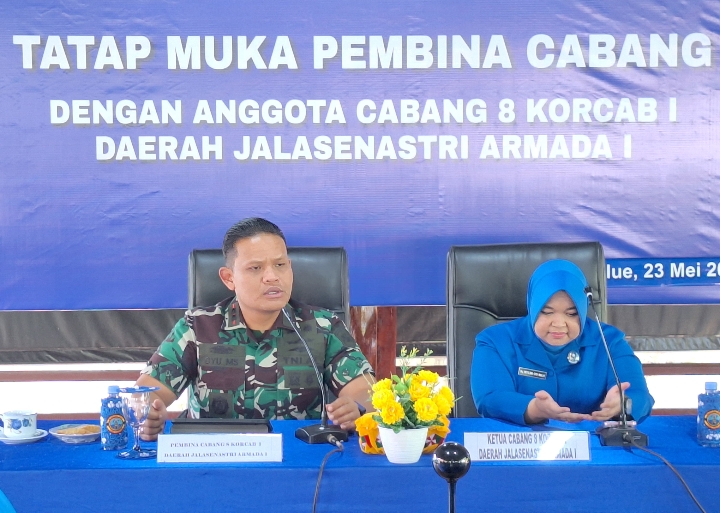 Simeulue – MCN.com – Pembina Cabang 8 Korcab I DJA I Letkol Laut (P) Oyu Mulia Sukmana, S.T., M.T., M.Tr. Opsla., didampingi Ketua Cabang 8 Korcab l DJA l Ny. Meylina Oyu Mulia, melaksanakan kegiatan tatap muka dengan anggota Jalasenastri Cabang 8 Korcab I DJA I, bertempat di Gazebo Eco Park, Mako Lanal Simeulue, Jalan Letkol Ali Hasan, Desa Lugu, Kecamatan Simeulue Timur, Kabupaten Simeulue, Jum’at (23/05/2025).