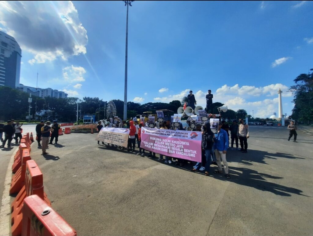 Puluhan Pemuda yang tergabung dalam Himpunan Mahasiswa Politik Nusantara (Hasa Polnus) menggelar aksi demo untuk mendukung institusi Polri khususnya Polda DKI Jakarta agar menangkap dan menindak tegas para pelaku yang memprovokator pada aksi demo mayday dan peringatan reformasi.