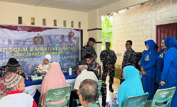 Dabo Singkep,- MCN.com – Dalam rangka memperingati Hari Ulang Tahun Ke-80 Tentara Nasional Indonesia Angkatan Laut (HUT Ke-80 TNI AL, Pangkalan TNI AL (Lanal) Dabo Singkep menggelar kegiatan Bakti Sosial dan Bakti Kesehatan sebagai wujud kepedulian dan pengabdian kepada masyarakat, Senin (8/9/2025).