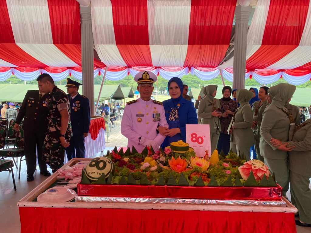 Banda Aceh,- MCN.com -Komandan Pangkalan TNI Angkatan Laut (Danlanal) Sabang Kolonel Laut (P) Sadimin, S.E., M.Tr. Opsla., didampingi Ketua Cabang 3 Daerah Kodaeral I Gabungan Jalasenastri Koarmada RI Ny. Widya Sadimin, menghadiri Upacara Peringatan Hari Ulang Tahun (HUT) Ke-80 Tentara Nasional Indonesia (TNI) yang digelar di Lapangan Blang Padang, Kota Banda Aceh, Minggu (5/10/2025).